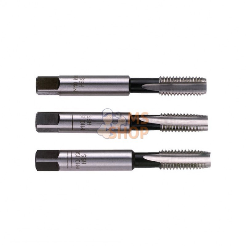 - ISO 2857, ISO 529 ; NF ISO 529, NF EN 22857. - Jeux de 3 tarauds : ébaucheur,intermédiaireet finisseur. - Acier HSS. |