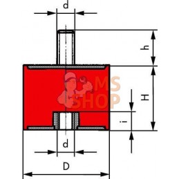 | Caractéristiques | ["- Compression maximale\xa0: 15\xa0% de la hauteur - Fixation 1x filet mâle et 1x filet femelle - Les pièces métalliques et tiges filetées utilisées sont en acier inoxydable - Résistance à l'eau de mer, aux acides et à l'oxyde de souffre - Antimagnétique"] |