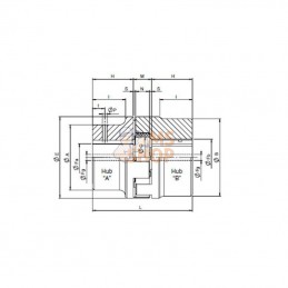 - Alésage de moyeu, rainure de clavette et taraudage en option - Livrable conformément à la directive sur les produits ATEX 94/9/EG - L'accouplement complet se compose de : 2 demi-accouplements de type GRMB..B1/GRMB..B2 et 1 étoile en plastique - Échangeable avec Rotex (KTR), Spidex RaJa, MultiMont Astra (Reich), Trasco (SIT) &, Giflex (Chiaravalli) |